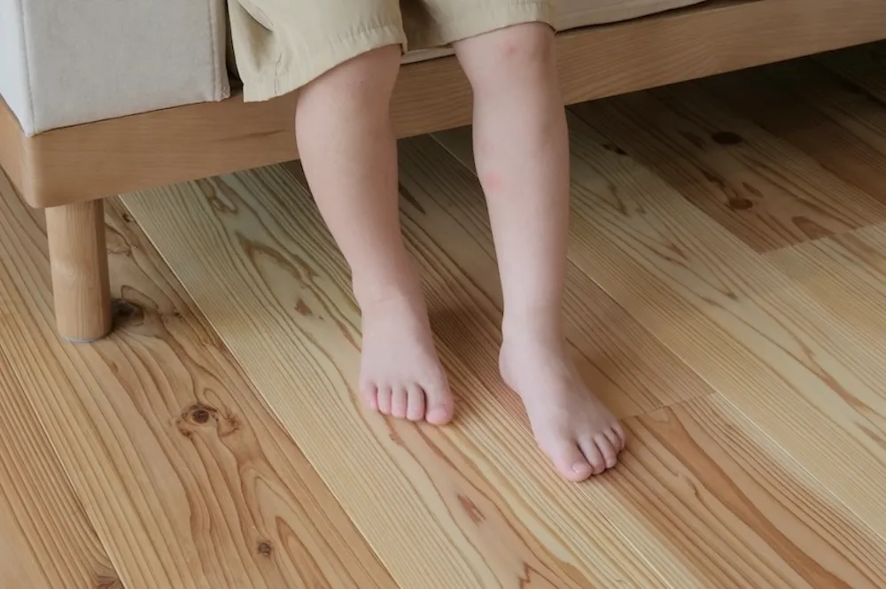 無垢フローリングや漆喰や珪藻土などの自然素材を使用。 化学物質を極力使わない健康的な住環境で、素足で過ごす気持ちよさ、深呼吸したくなる空気感を。自然素材は赤ちゃんやペットにも安心で、住むほどに味わい深く育ちます。