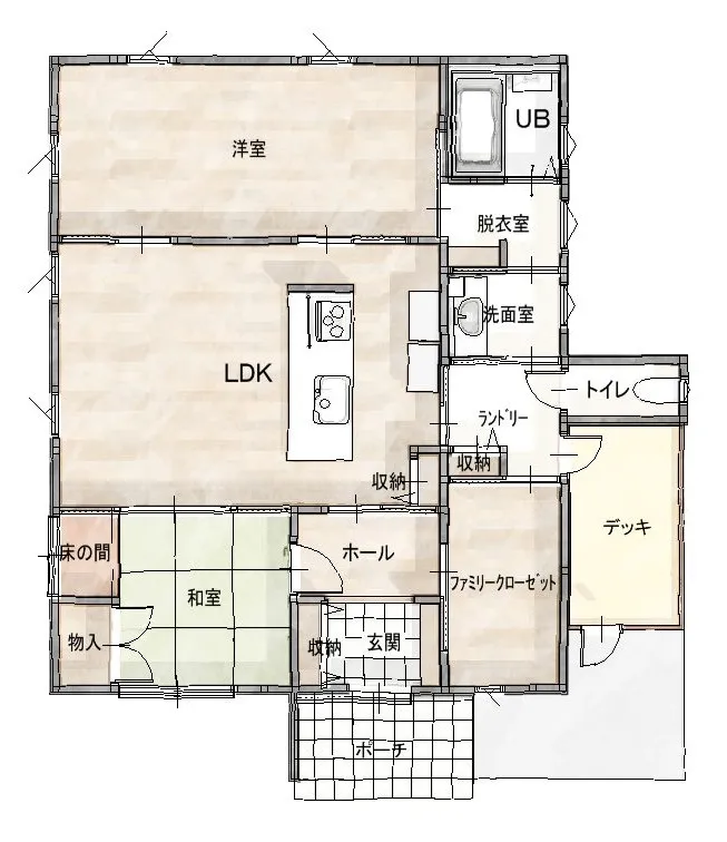 無垢家てんねんいろが考える「家族のかたち」に合わせた平屋の間取りプランをご紹介します。