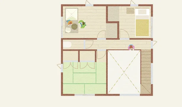 天然イグサの畳と和紙の天井が心地よい和室は、来客をもてなしたり、家族がほっと一息つける特別な場所。お子さまのお昼寝スペースとしても重宝します。 -