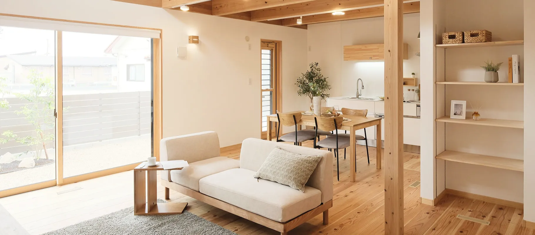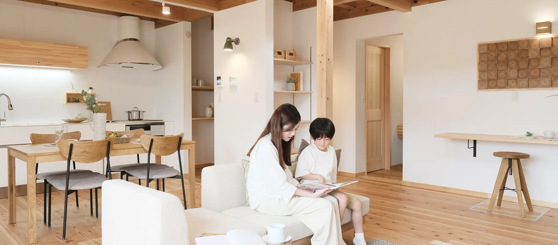 素足で心地よく過ごせる杉の無垢床、調湿・消臭効果のあるシラス壁やエッグウォールなど、自然素材をふんだんに使用しました。