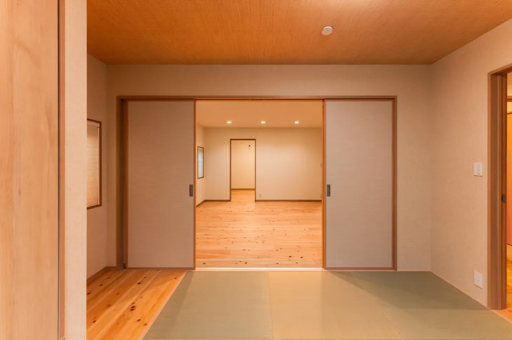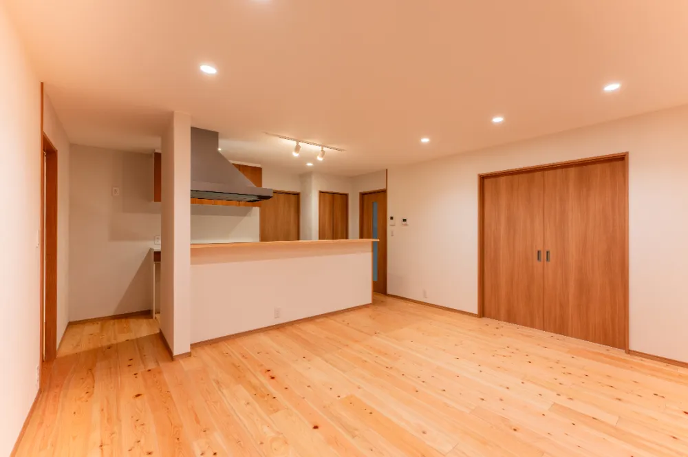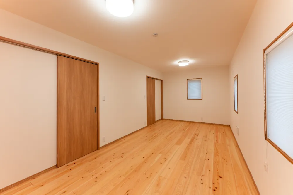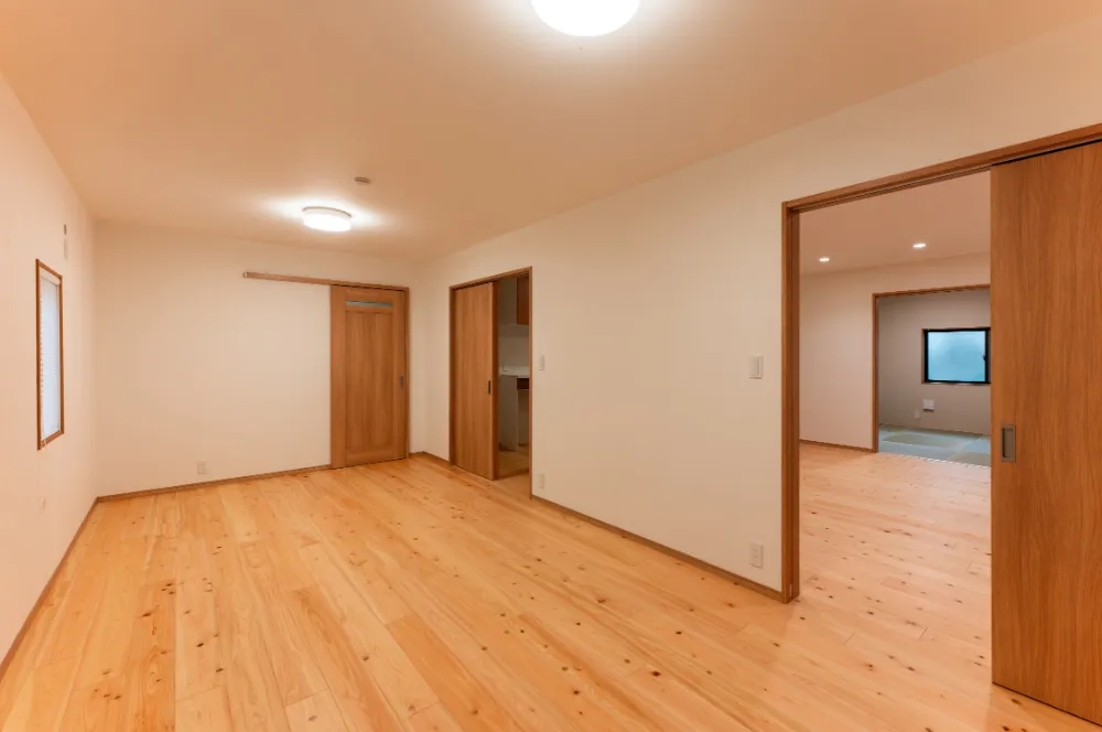 キッチンと3つの和室の間取りから、家族の笑い声が響く開放的なLDKへと間取り変更。隣り合う広々とした洋室は、やがては子どもたちそれぞれの個室として変化させられる設計です。